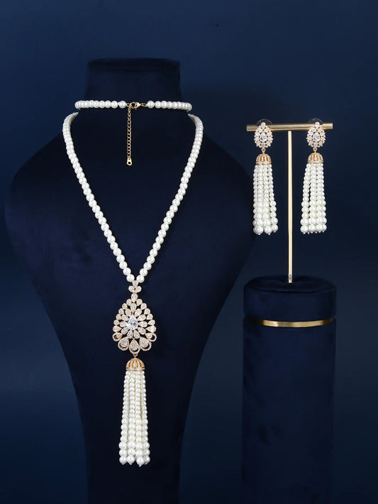 Bride Wedding Jewelry Set Elegant Enamel Rhinestone Love Imitation Pearl Beaded Necklace and Earrings Women's Party Accessories