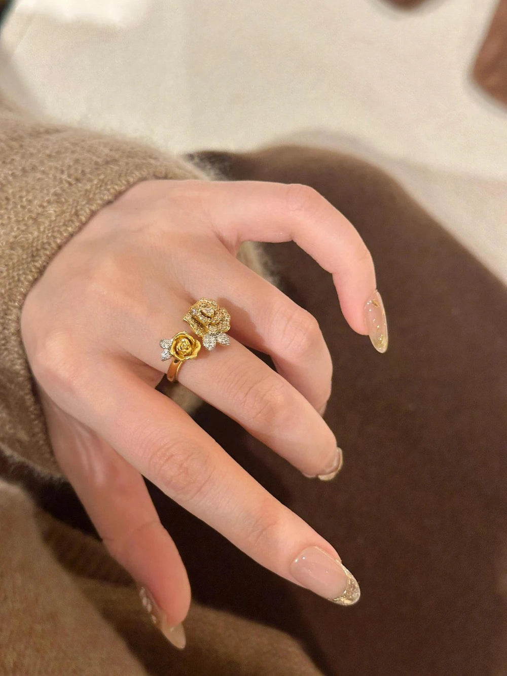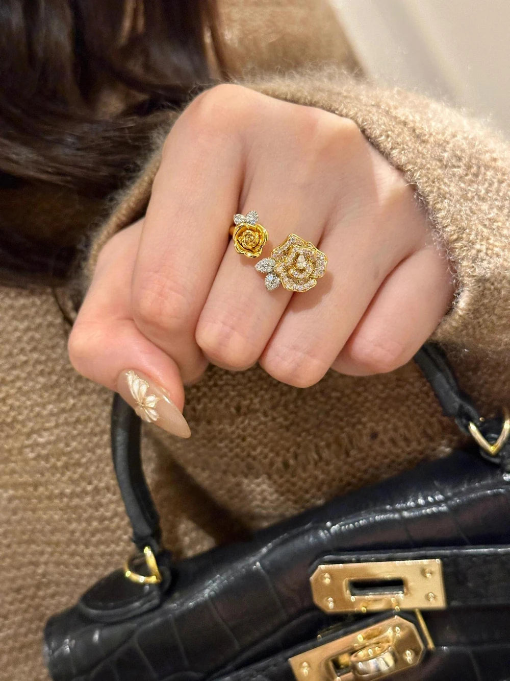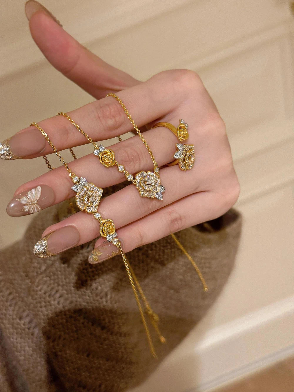 Romantic Sparkling Yellow Rose flower jewelry sets Luxury Exquisite Wedding Engagement inlay Diamond Bracelet Necklace Ring